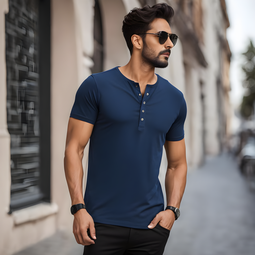 Classic Comfort- Men's Henley Blue T-Shirt
